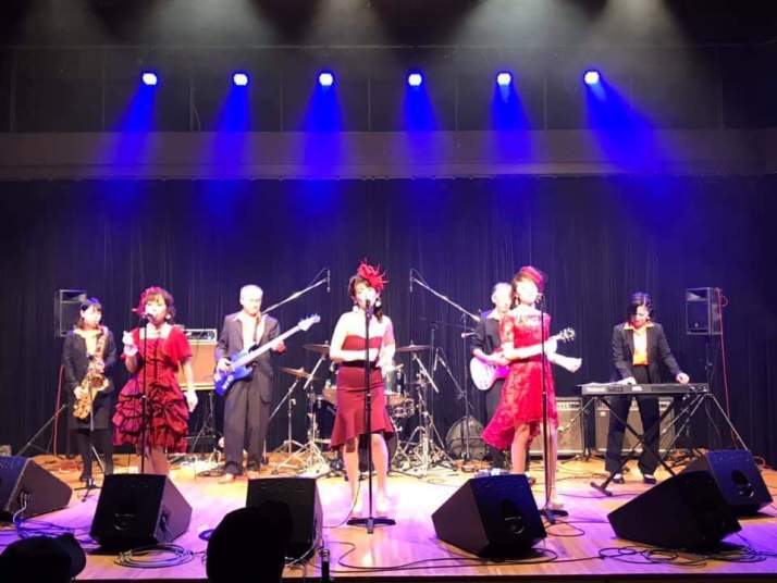 昨年9月のおやじバンドコンテストの入賞者によるイベント。ヒロコちゃんが観にきて |